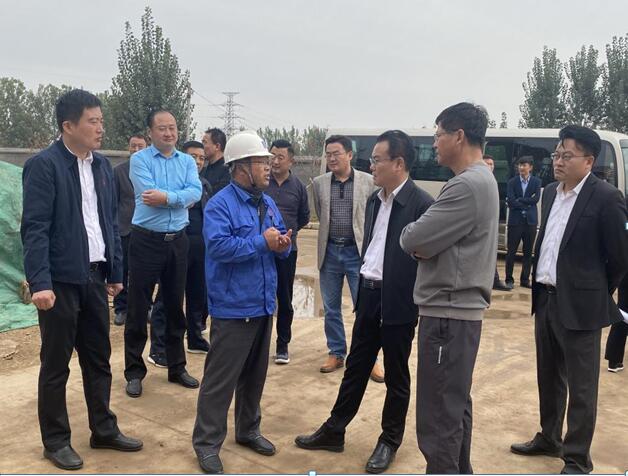 在項(xiàng)目施工現(xiàn)場(chǎng),劉英奎詳細(xì)介紹了企業(yè)概況、項(xiàng)目建設(shè)進(jìn)度及公司發(fā)展后續(xù)方向。尹作義對(duì)公司的未來發(fā)展以及近年來園區(qū)取得的發(fā)展成果給予充分肯定和贊賞。