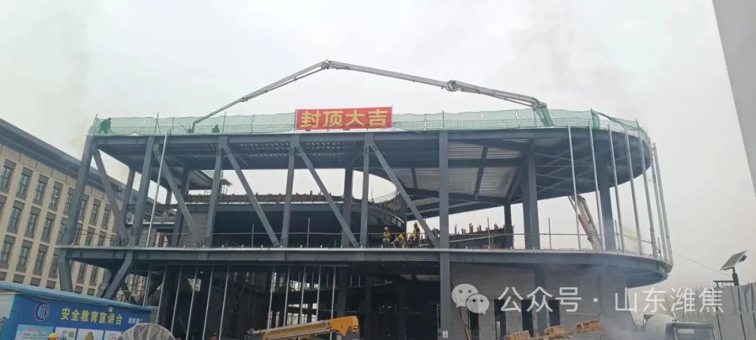 11月16日,伴隨著一車混凝土澆筑的完成,濰焦文化中 心項目經(jīng)過72天爭分奪秒日夜奮戰(zhàn),主體架構(gòu)順利封頂。
