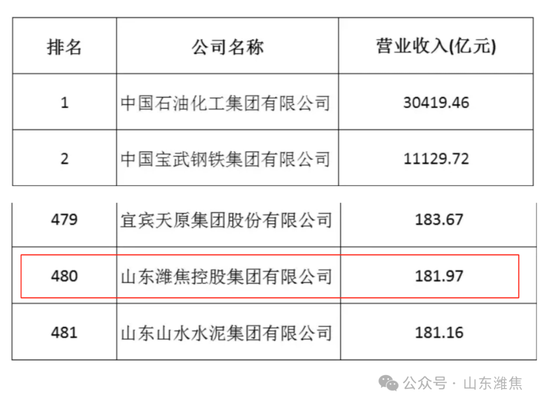 近日,在安徽合肥舉辦的2024世界制造業(yè)大會(huì)上,中國(guó)企業(yè)聯(lián)合會(huì)、中國(guó)企業(yè)家協(xié)會(huì)發(fā)布了2024中國(guó)制造業(yè)企業(yè)500強(qiáng)榜單,這是中國(guó)企聯(lián)連續(xù)第20次向社會(huì)發(fā)布該項(xiàng)榜單。山東濰焦控股集團(tuán)有限公司入圍“2024中國(guó)制造業(yè)企業(yè)500強(qiáng)”,位列榜單第480位。
